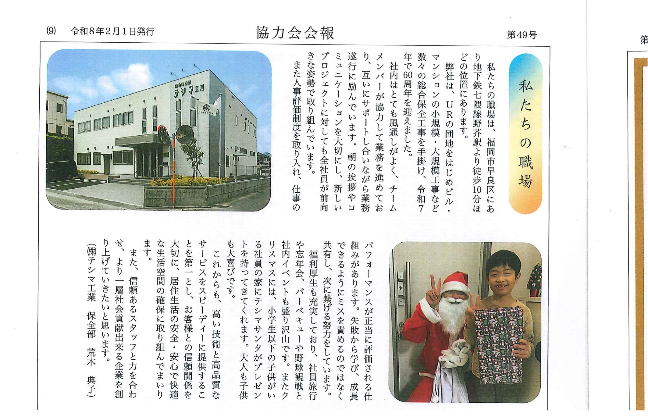 2026/2/13- 一般社団法人福岡市土木建設協力会が毎年制作している、令和8年2月1日発行の協力会会報誌に当社社員の文章が掲載されました。